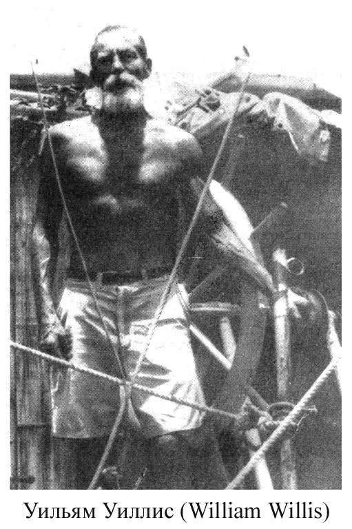 ...знаменитый американский мореплаватель. Родился в 1893 году. В пятнадцать лет поступил юнгой на парусник «Генриетта». Два раза огибал мыс Горн. Сменил множество профессий. Был золотоискателем и охотником на Аляске, работал докером, строителем, фельдшером, издал несколько поэтических сборников. В шестьдесят два года, вдохновленный подвигом Бомбара и Хейердала, решил на собственном опыте испытать тяготы одиночного плавания и собрать материал, который пригодился бы терпящим бедствие на море. На бальсовом плоту «Семь сестричек» он совершил замечательное путешествие протяженностью 6700 миль, от суровых берегов Перу до обожженных солнцем песков Самоа. 5 июня 1963 года У. Уиллис снова в одиночном плавании в океане на плоту под вызывающим названием «Возраст не помеха». На этот раз он решил от берегов Перу дойти до Австралии. 6 ноября 1964 года грандиозное плавание было завершено. Пройдено около 11000 миль. Об У. Уиллисе пишут все газеты. Плот «Возраст не помеха» экспонируется близ статуи Свободы в Нью-Йорке. На вопрос корреспондентов, что он теперь собирается предпринять, путешественник неизменно отвечал: «Я поплыву снова. Но на этот раз это будет Атлантика». Для преодоления Атлантического океана У. Уиллис собирает крошечную яхту «Малышка» длиной 3 метра 36 сантиметров. Дважды - в 1966 и 1967 годах - он пытается совершить плавание через Атлантику, но обе попытки были неудачны. По причине неисправности судна или нездоровья он каждый раз возвращается к берегам Северной Америки. Третья попытка в 1968 году закончилась катастрофой. 20 сентября 1968 года советский рефрижератор «Янтарный» обнаружил полузатопленную яхту со сломанной мачтой. Людей на паруснике не оказалось. В кают-компании были обнаружены документы на имя Уильяма Уиллиса. Как и при каких обстоятельствах погиб отважный мореплаватель, остается загадкой.