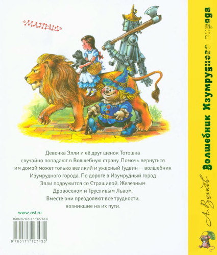 ИЗ ИЗДАНИЯ: Впервые сказка «Волшебник Изумрудного города» издана в 1939 году. Написана она по мотивам сказки американского писателя Лимана Франка Баума (1856-1919) «Мудрец из страны Оз». Ребята многих поколений полюбили героев этой волшебной сказки. По многочисленным просьбам читателей А. Волков написал еще несколько сказок о Волшебной стране, где читатели снова встречают знакомых героев: «Урфин Джюс и его деревянные солдаты», «Семь подземных королей», «Огненный бог Марранов», «Желтый туман», «Тайна заброшенного замка». |