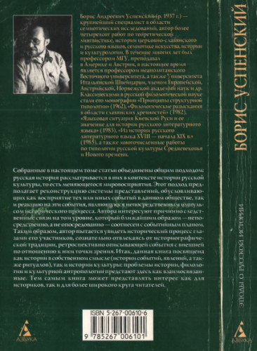 ИЗ ИЗДАНИЯ: Собранные в настоящем томе статьи, разнообразные по своей тематике, объединены общим подходом к русской истории, рассматривающейся в контексте истории русской культуры. Автором предпринимается попытка показать исторический процесс с точки зрения его участников. Этот подход предполагает реконструкцию системы представлений, определивших развитие русской истории. Проблемы истории взаимосвязаны в сборнике с проблемами филологии и культурной антропологии. Книга адресована историкам, филологам, философам, а также широкому кругу читателей, интересующихся гуманитарными дисциплинами. |