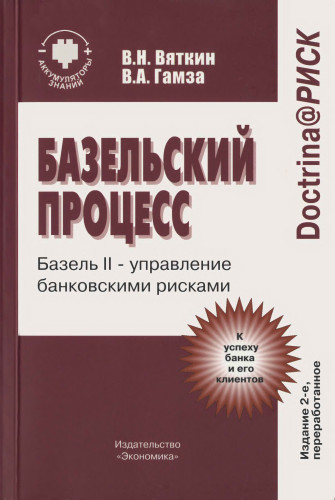 - ⒶⒸВяткин В.Н... Базельский процесс: Базель-2 - управление банковскими рисками. [Djv- 3.6M] [Pdf- 3.7M] Научное издание. Издание 2-е, дополненное. Авторы: Валерий Нурович Вяткин, Владимир Андреевич Гамза. Художественное оформление: С.Г. Абелин, О.В. Мамлеева.
