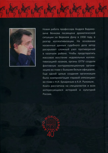 ИЗ ИЗДАНИЯ: Работа посвящена драматической ситуации на Верхнем Дону в 1930 году, в разгар коллективизации. На основании косвенных данных судебного дела автор раскрывает сложный узел противоречий в казачьем районе. Чтобы предотвратить массовое восстание недовольных коллективизацией казаков, органы ОПТУ создали фиктивную контрреволюционную организацию во главе с бывшим белым офицером. Еще одной целью создания организации была компрометация «правой оппозиции» во главе с Н.И. Бухариным и А.И. Рыковым. Книга рассчитана на специалистов и всех интересующихся историей и культурой России. |
