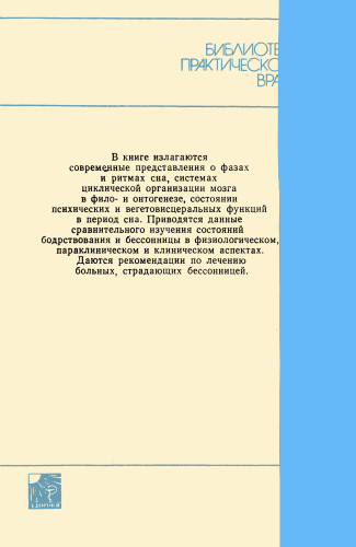 ИЗ ИЗДАНИЯ: В книге изложены современные представления о фазах и ритмах сна, системах циклической организации мозга в фило- и онтогенезе, состоянии психических вегетативно-висцеральных функций в период сна. Описаны механизмы нарушений в лимбикоретикулярном комплексе и в первую очередь в гипоталамо-мезенцефальной системе, обусловливающей ритмические циклы и фазы сна. Приведены данные сравнительного изучения состояний бодрствования и бессонницы в физиологическом, параклиническом и клиническом аспектах. Даны рекомендации по лечению больных, страдающих бессонницей. Для психиатров, невропатологов и врачей широкого профиля. |