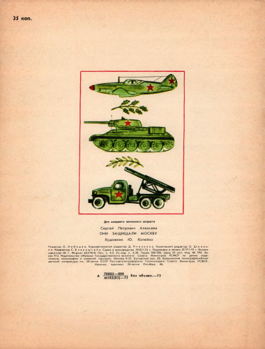 ИЗ ИЗДАНИЯ: Многими боевыми орденами и медалями награждает наша Родина своих героев. На одной из медалей изображена Красная площадь, Кремлевская стена, танк и фигуры бойцов с винтовками наперевес, устремившиеся вперед на врага. Человек, награжденный такой медалью, участник Великой Московской битвы. Летом 1941 года на нашу Родину напали фашисты. Они пытались прорваться к Москве. Сражение за Москву происходило осенью 1941 и в начале зимы 1942 года. В жестоких боях фашисты были разбиты и отступили. О некоторых боевых эпизодах Великой Московской битвы и ее участниках и написаны эти рассказы. |