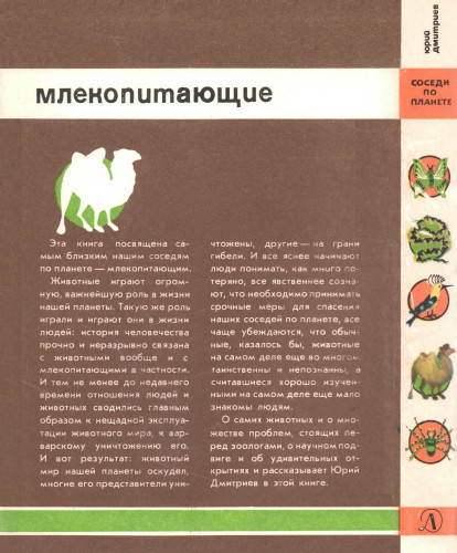 ИЗ ИЗДАНИЯ: Книга рассказывает о классе млекопитающих, о проблемах охраны и разумного использования диких животных в интересах людей. |