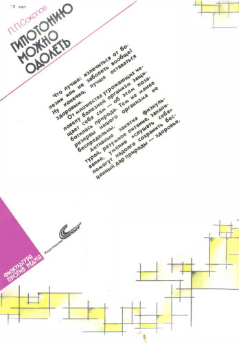 ИЗ ИЗДАНИЯ: Книга кандидата медицинских наук Соколова П.П. позволяет читателю в дополнение к обычному лечению начать самостоятельную борьбу с гипотонией. Рациональный образ жизни, регулярные занятия физкультурой, правильное дыхание, специальная гимнастика для тренировки ортостатической устойчивости, изометрическая гимнастика, биоритмологический микромассаж - вот методы, которыми вооружает читателей эта книга. Изложенный материал может быть полезен не только больному гипотонией, но и здоровому человеку, которому мешает утомление, усталость, снижение работоспособности. Рассчитана на массового читателя. |