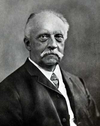 Большая советская энциклопедия: Гельмгольц (Helmholtz) Герман Людвиг Фердинанд (31.8.1821, Потсдам, - 8.9.1894, Берлин), немецкий физик, математик, физиолог и психолог. Учился в Военно-медицинском институте в Берлине. С 1843 военный врач в Потсдаме. Профессор физиологии университетов в Кенигсберге (с 1849), Бонне (с 1855), Гейдельберге (с 1858). С 1871 профессор физики в Берлинском университете, с 1888 директор физико-технического института в Берлине. В 1847 в работе «О сохранении силы» Г. впервые дал математическое обоснование закона сохранения энергии и, проанализировав большинство известных в то время физических явлений, показал всеобщность этого закона, в частности то, что происходящие в живых организмах процессы также подчиняются закону сохранения энергии; это было наиболее сильным аргументом против концепции особой «живой силы», якобы управляющей организмами. Г. впервые доказал применимость принципа наименьшего действия (см. Наименьшего действия принцип) к тепловым, электромагнитным и оптическим явлениям, вскрыл связь этого принципа со вторым началом термодинамики. В 1882 Г. придал второму началу термодинамики форму, позволившую применить его к изучению химических процессов, ввел понятие свободной энергии (см. Гельмгольцева энергия) и связанной энергии. Г. заложил основы теории вихревого движения жидкости (1858). Большое значение для развития аэродинамики имели исследования Г. по теории разрывных движений (1868). Выдвинутый Г. принцип механического подобия позволил объяснить ряд метеорологических явлений и механизм образования и поведения морских волн. В 1873 Г. выступил с изложением некоторых теоретических вопросов управляемого воздухоплавания. Работы Г. по электромагнетизму, оптике и акустике большей частью связаны с его физиологическими исследованиями. Он обнаружил явление колебательного разряда лейденской банки - факт, сыгравший существенную роль в развитии теории электромагнетизма. Г. попытался измерить скорость распространения электромагнитных возмущений, однако ему это не удалось. По его предложению Г. Герц произвел опыты с электромагнитными волнами. Г. развил теорию аномальной дисперсии (1874). В 1881 выдвинул идею об атомарном строении электричества. В области акустики Г. открыл комбинационные тона, построил модели уха, что позволило изучить характер воздействия звуковых волн на орган слуха, разработал теорию этого взаимодействия, создал учение о слуховой функции кортиева органа, решил т.н. задачу органной трубы. Разработал физическую и физиологическую теорию восприятия музыкальных звуков. Труды Г. в области физиологии посвящены изучению нервной и мышечной систем. Он обнаружил и измерил теплообразование в мышце (1845-47) и изучил процесс мышечного сокращения (1850-54). Впервые (1850) измерил скорость распространения возбуждения в нервах, определил скрытый период рефлексов (1854). Г. принадлежат основополагающие работы в области физиологии зрения. В 1853 он предложил теорию аккомодации. В 1859-66 разработал учение о цветовом зрении. Сконструировал ряд измерительных приборов (офтальмоскоп, маятник Гельмгольца и др.), а также разработал количественные методы физиологических исследований. Интересны исследования Г. по геометрии. Он доказывал, что все аксиомы геометрии имеют опытное происхождение и что опытным путем можно было бы выяснить форму простран