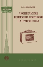 ИЗ ИЗДАНИЯ: В брошюре описаны три переносных самодельных приемника на транзисторах и приведена методика их налаживания. Конструкции разработаны ленинградскими радиолюбителями В.В. Яковлевым и А.Л. Степановым. Брошюра рассчитана на радиолюбителя, имеющего небольшой опыт работы с транзисторами. |