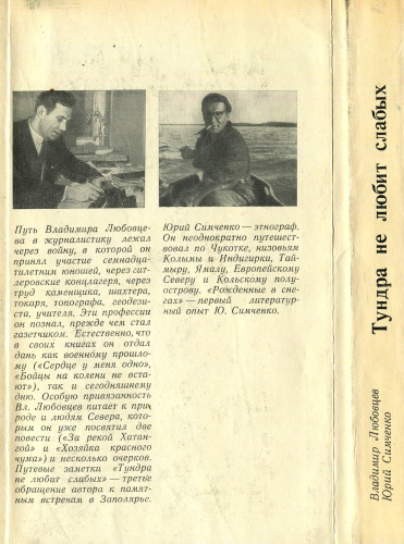 * Любовцев В., Симченко Ю. Тундра не любит слабых. (1968)
