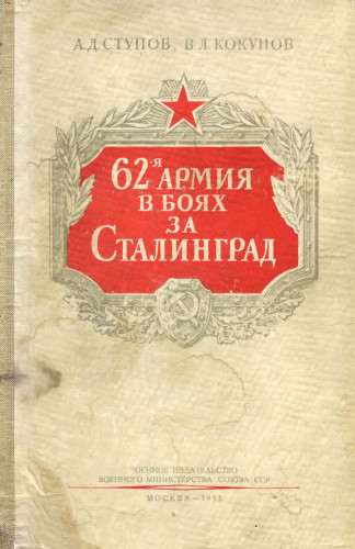 ИЗ ИЗДАНИЯ: Книга «62-я армия в боях за Сталинград» повествует о боевых действиях героической 62-й армии, принявшей на себя в битве за Сталинград главный удар немецко-фашистских войск и вместе с другими армиями Сталинградского и Донского фронтов грудью отстоявшей волжскую твердыню. Она написана еще в ходе Сталинградского сражения непосредственными его участниками - офицерами политотдела армии гвардии подполковниками Ступовым А.Д. и Кокуновым В.Л. Авторы не ставили своей целью дать полное и всестороннее освещение событий Сталинградской битвы. Задача их состояла в том, чтобы на примере 62-й армии показать рост боевого мастерства и героизм доблестных защитников Сталинграда, опыт борьбы которых служит и будет служить делу дальнейшего совершенствования боевой выучки солдат и офицеров Советской Армии. |