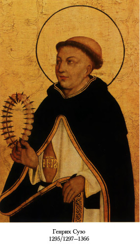 Википедия: Генрих Сузо (нем. Heinrich Seuse, Heinrich (von) Suso, Heinrich von Berg, 21 марта 1295 или 1297, Констанц - 25 января 1366, Ульм) - немецкий писатель и поэт, богослов-мистик. Ученик Мейстера Экхарта. Беатифицирован в 1831. День памяти - 2 марта. Происходил из рыцарского рода фон Бергов. Принял фамилию матери. В 13 лет ушел в доминиканский монастырь Св. Николая в Констанце. С 1323 году учился в Кельне у Мейстера Экхарта, в 1327 году вернулся в Констанцский монастырь, где провел 20 лет. В 1330 и 1336 годах был обвинен в ереси и привлечен к суду, но признан невиновным. С 1346 года жил в Ульме, где и умер (могила не сохранилась). Почти все сочинения Сузо написаны на старых диалектах немецкого языка. Парадоксальным образом единственный труд, написанный на латыни - «Часослов мудрости» («Horologium sapientiae», 1339) - был наиболее популярным из наследия писателя в позднесредневековой Европе. В течение, по крайней мере, двух столетий «Часослов» копировали, иллюстрируя копии замечательными художественными миниатюрами.