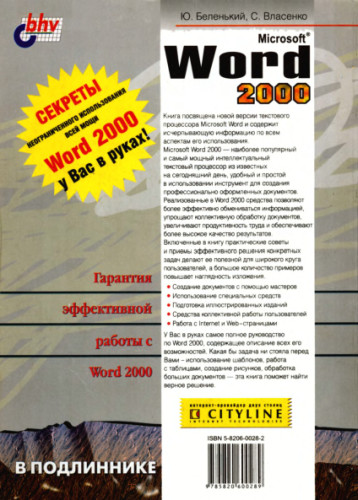 - ⒶⒸБеленький Ю.М... Microsoft® Word 2000. [Djv-56.3M] Наиболее полное руководство. Авторы: Юрий М. Беленький, Сергей Ю. Власенко.