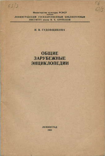 Википедия: Ирина Васильевна Гудовщикова (урожденная Ломакина; 14 декабря 1918, Минск - 9 марта 2000, Санкт-Петербург) - советский и российский ученый-библиограф и библиографовед, специалист в области истории, теории и методики библиографии, доктор педагогических наук, профессор. Родилась в русско-польской семье. В 1924 году вместе с семьей переехала в Ленинград, где в 1936 году окончила среднюю школу. В 1941 году окончила филологический факультет Ленинградского государственного университета по специальности русиста-филолога. В 1940 году была опубликована ее первая печатная работа - рецензия на воспоминания Э. Триоле о В.В. Маяковском. После окончания университета была направлена в Новокузнецкий педагогический институт преподавать литературу. В 1941-1946 годах работала в научно-технической библиотеке Кузнецкого металлургического комбината переводчицей с французского и английского языков. В 1946 году вернулась в Ленинград, где работала в Библиотеке АН СССР (БАН) в отделах иностранного комплектования, затем - в справочно-библиографическом; в дальнейшем руководила отделом иностранного комплектования. В 1952-1954 годы читала курс лекций по иностранной библиографии для сотрудников БАН и в 1954-1960 годах - для сотрудников Государственной публичной библиотеки (ГПБ). В 1954 году поступила в аспирантуру Ленинградского государственного библиотечного института им. Н.К. Крупской (ЛГБИ). После окончания аспирантуры осталась работать в этом же институте на кафедре общей библиографии в должностях старшего преподавателя, в дальнейшем доцента и профессора (звание было присвоено в 1980 году). Участвовала в создании при кафедре кабинета иностранной библиографии. В 1958 году защитила диссертацию на соискание ученой степени кандидата педагогических наук по теме «Национальная и отраслевая библиография и вопросы библиографической теории в Польской Народной Республике». Официальные оппоненты - К.Р. Симон и Б.С. Боднарский. Работая на кафедре общей библиографии, дополнительно руководила аспирантурой в течение десяти лет. В 1977 году в Государственной библиотеке СССР имени В.И. Ленина защитила диссертацию на соискание ученой степени доктора педагогических наук по теме «Универсальная библиография библиографии (История, современное состояние, перспективы развития)». Диссертация содержала обзор международной библиографии библиографии и основных ее разновидностей, историю и состояние национальной библиографии библиографии в 55 странах мира. Также в работе был приведен систематизированный список изданий библиографии библиографии, насчитывающий 969 названия. Некоторое время преподавала иностранную библиографию в Казанском государственном университете культуры и искусств, который являлся филиалом ЛГИК. Участвовала в поездках в составе делегации ЮНЕСКО, работала в библиотеках Швеции, Англии, Швейцарии, Италии, читала лекции в институтах культуры различных городов СССР, была участником различных научно-практических конференций. Муж - биолог Д.В. Лебедев. В браке родился сын Андрей (род. 1950). Умерла 9 марта 2000 года в Санкт-Петербурге. Похоронена на кладбище Санкт-Петербургского крематория.
