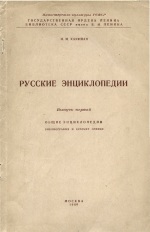 Предисловие (3). Общие энциклопедии дореволюционного времени (5). «Пространное поле» (7). «Энциклопедический словарь» С.И. Селивановского (10). «Энциклопедический лексикон» Плюшара (15). «Справочный энциклопедический словарь» Старчевского - Крайя (22). Словарь русских ученых и литераторов (28). «Настольный словарь» Ф.Г. Толля (35). «Русский энциклопедический словарь» И.Н. Березина (38). Энциклопедии Жолкевича, Клюшникова и др. (42). «Энциклопедический словарь» Брокгауза и Ефрона (44). «Малый энциклопедический словарь» (54). «Настольный энциклопедический словарь» Гарбель - Гранат (55). «Энциклопедический словарь» Ф.Ф. Павленкова (58). «Энциклопедический словарь» М.М. Филиппова (62). «Большая энциклопедия» (64). «Новый энциклопедический словарь» Брокгауза и Ефрона (67). «Русская энциклопедия» (70). «Энциклопедический словарь» Гранат (72). Советские общие энциклопедии (79). Большая советская энциклопедия (81). Первое издание (81). Второе издание (86). Малая советская энциклопедия (93). Первое издание (93). Второе издание (96). Третье издание (97). Советский энциклопедический словарь (98). Энциклопедический трехтомник (99). Краткая советская энциклопедия (99). Общие обзоры русских энциклопедий (101).