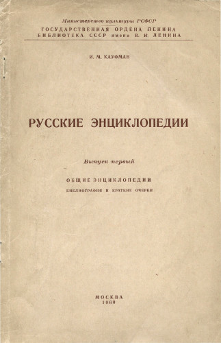 - ⒶⒸКауфман И.М. Русские энциклопедии. Выпуск 1. Общие энциклопедии. [Djv- 5.4M] [Pdf-11.5M] Библиография и краткие очерки. Автор: Исаак Михайлович Кауфман. Редактор: Исаак Михайлович Кауфман.